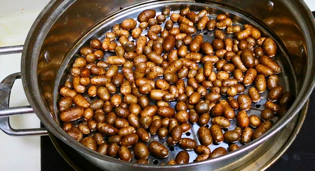 1、山藥豆生長在地底下,所以清洗一定要徹底,最好的辦法就是在淡鹽水中消毒殺菌,然後清洗乾淨;起鍋加水,放入篦簾,把洗後的山藥豆倒在篦簾上,然後將其攤平,蓋上鍋蓋,水開後大火蒸10分鐘左右,我們可以用手捏一下,如果能夠輕鬆捏碎,那就代表着蒸熟了,盛出晾涼備用。