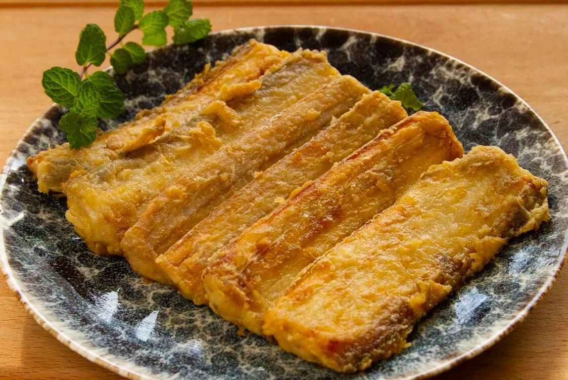 準備幾條帶魚,去掉內臟等切塊,放在水中多衝洗幾遍,接下來在裏面加上蔥段、薑片、鹽、五香粉、雞精、料酒,充分抓拌均勻,醃製半個小時左右。接下來把麪粉和澱粉混合,然後將帶魚放進去,均勻裹上粉,隨後下入油鍋中,煎到色澤金黃,出鍋開喫!