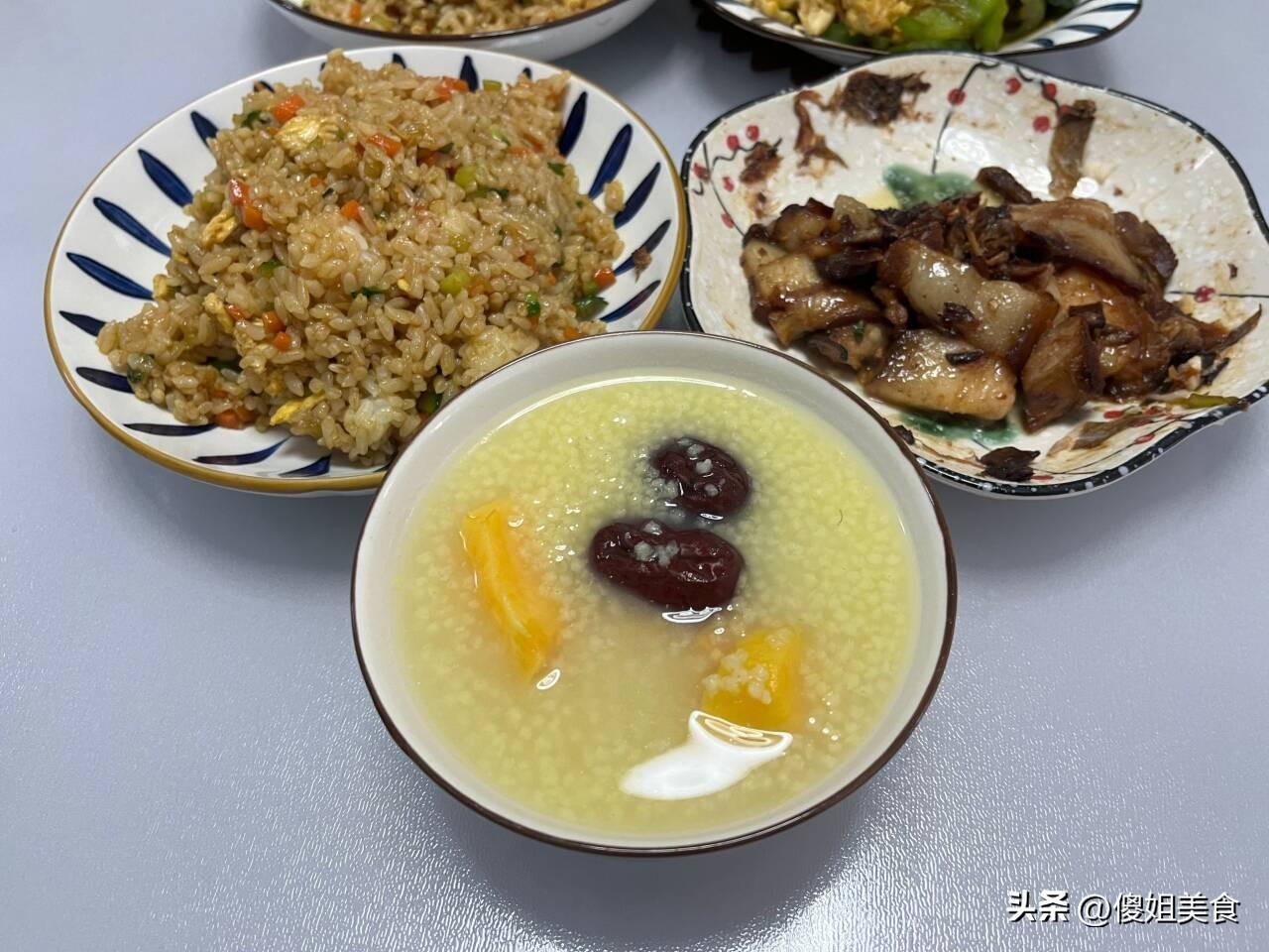 我們北方人早上愛喝粥,我就熬了一鍋紅棗地瓜小米粥,熬的黏黏糊糊的,沒想到孩子們也都愛喝。我今天高興連喝了兩大碗,未來兒媳直說阿姨胃口真好,應該是開心的吧,喫飯都香了。我感覺這樣的早餐很好了,有粥、有菜、有主食,不知道大家待客的時候早上喫什麼飯呢?