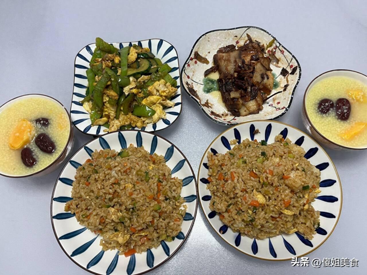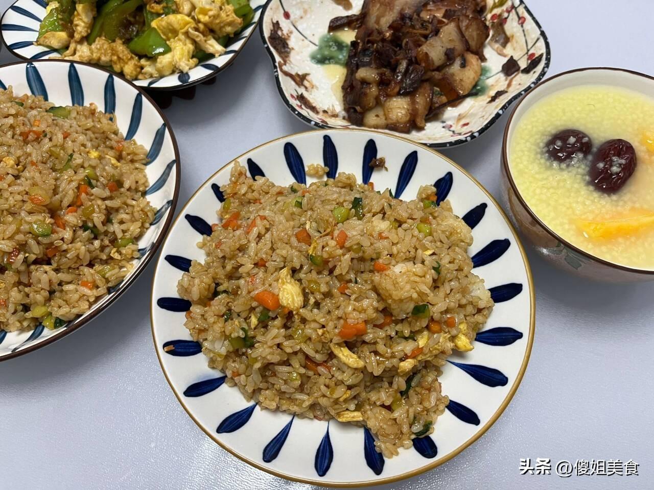 未來兒媳婦是南方人,她們南方人喜歡喫米飯,就蒸了些米飯,可是大早上的喫幹米飯也咽不下去啊,就想到了不如炒一下,放上各種蔬菜,炒米飯也是我的拿手廚藝,給未來兒媳婦露一手。早上五點就蒸熟米飯了,米飯晾涼後再炒不會成坨,配菜放的黃瓜、胡蘿蔔、雞蛋碎。起鍋燒油放蔥花炒香, 把胡蘿蔔和黃瓜碎放進去,倒點味極鮮和耗油就可以(不要放鹽,不然會很鹹),然後放入米飯不停的翻炒,最後把雞蛋碎倒進去翻版均勻就可以出鍋了,色香味俱全的炒米飯就做好了。沒想到未來兒媳還挺愛喫,直誇我炒的米飯好喫,喫了滿滿一大碗。
