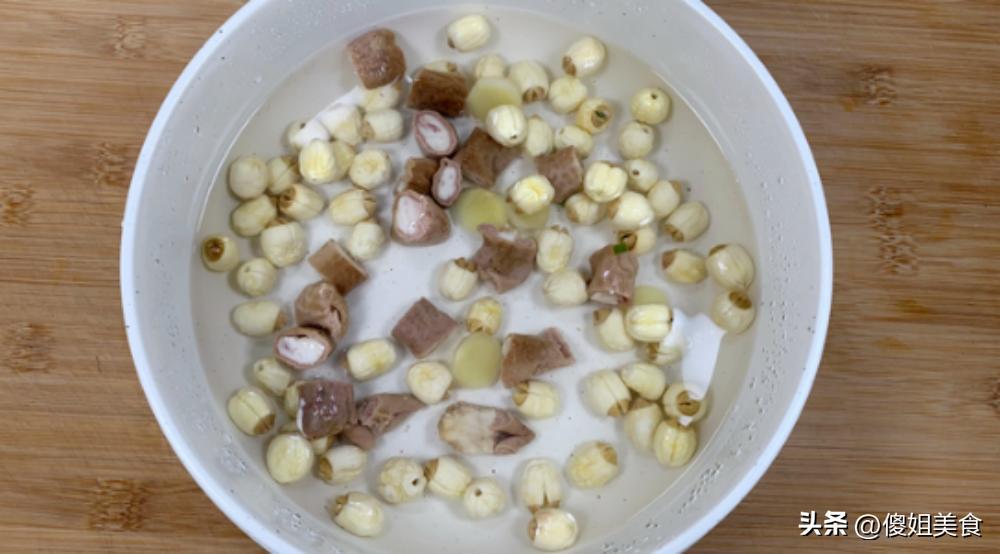 推薦食譜:【蓮子煮小腸】準備食材:豬小腸、蓮子、薑片、鹽、香油