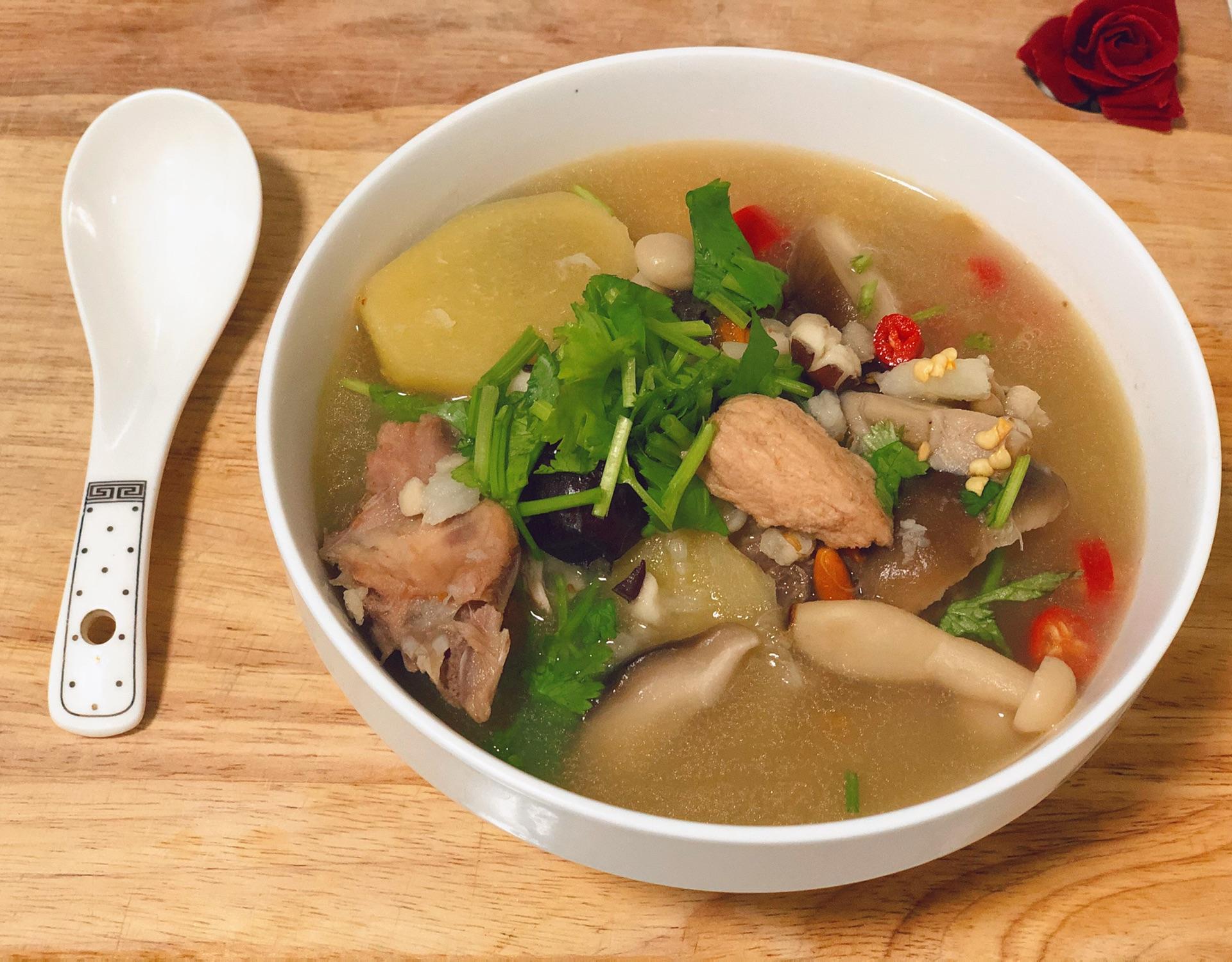 6食材煮爛即可,起鍋前,加入鹽, 胡椒粉, 蔥花即可。
