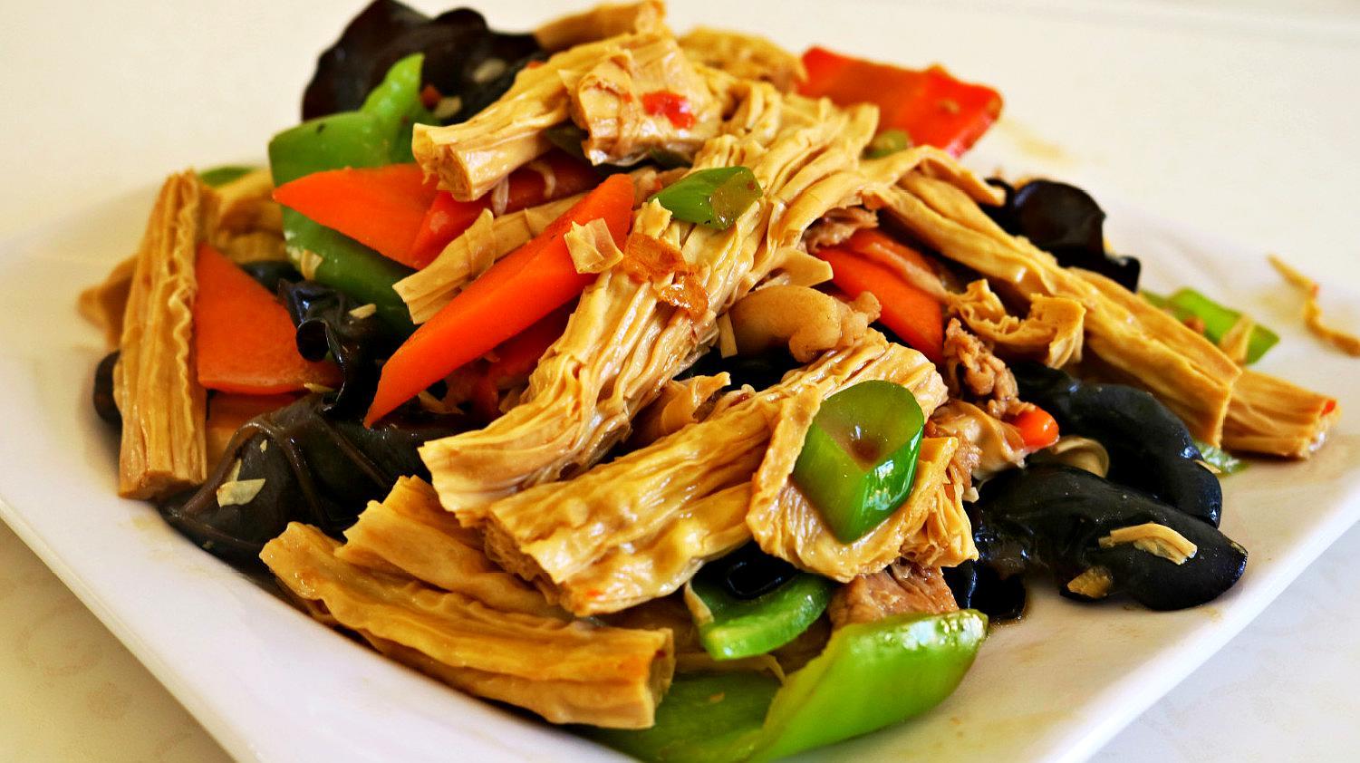推薦喫法,腐竹炒黑木耳。腐竹是優質的植物性蛋白來源,木耳則因富含鐵質而被譽爲“補血聖品”。兩者一起搭配,腐竹的軟滑與木耳的爽口爲這道菜增添了多層次的口感享受。不僅可以享受到美食的樂趣,還能收穫健康和美麗。