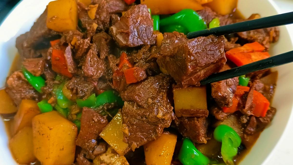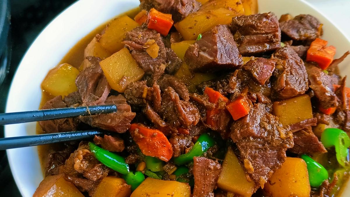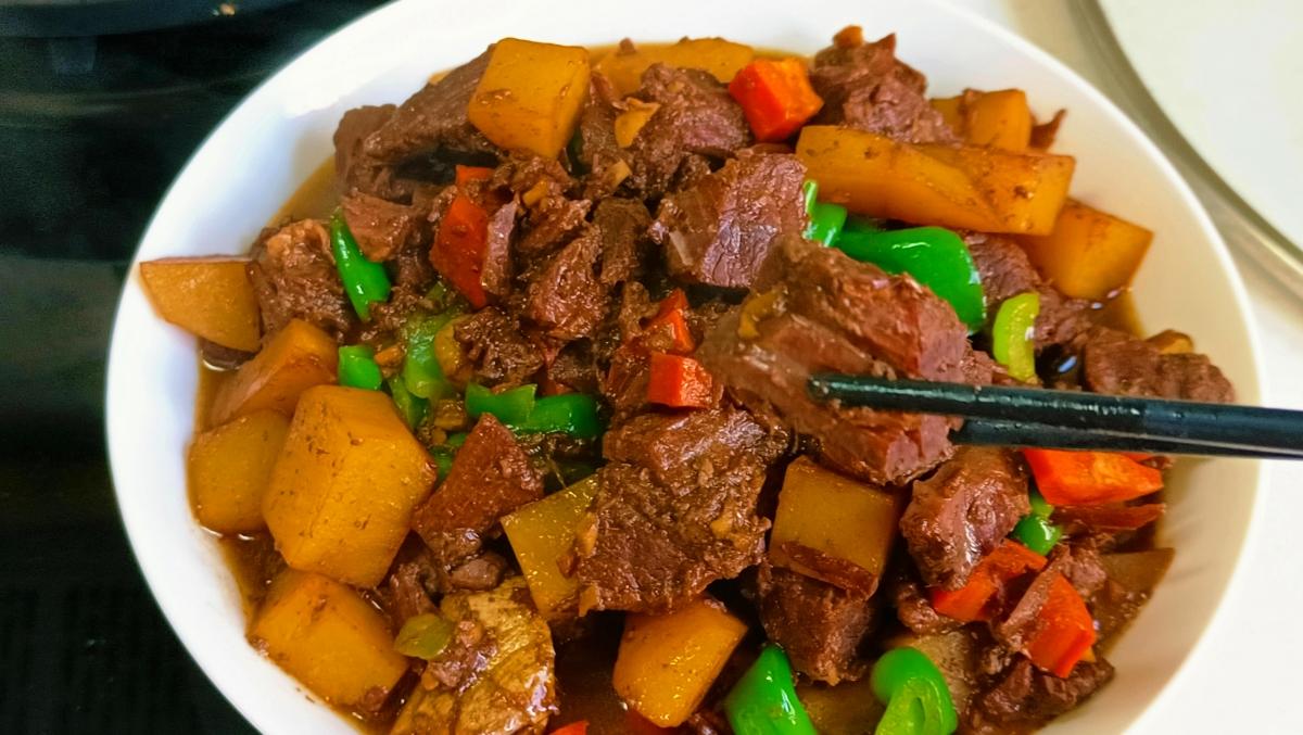 一道色、香、味俱全的土豆燉牛肉就做好了,太香了!牛肉軟爛入味,土豆吸收了牛肉的湯汁,喫起來格外香,回味無窮,再配上一碗香噴噴的白米飯,好喫得不得了!趕緊做起來吧~