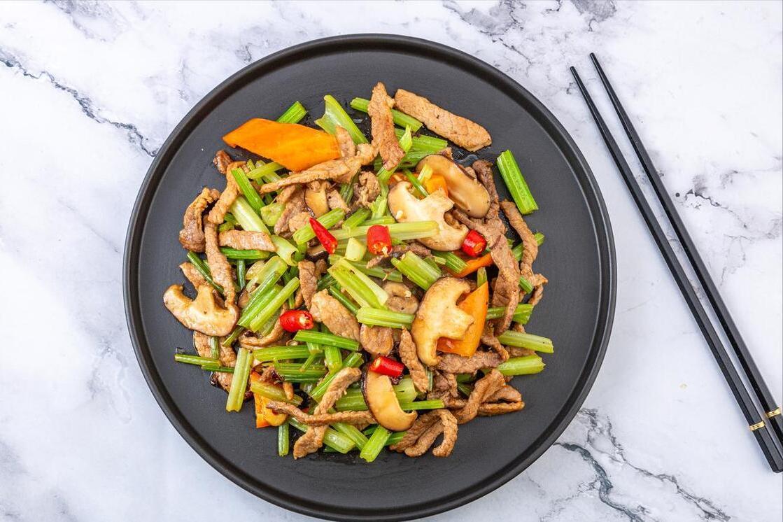 用到:芹菜、裏脊肉、薑絲、鹽、味精、白胡椒粉、料酒、生抽、澱粉、食用油