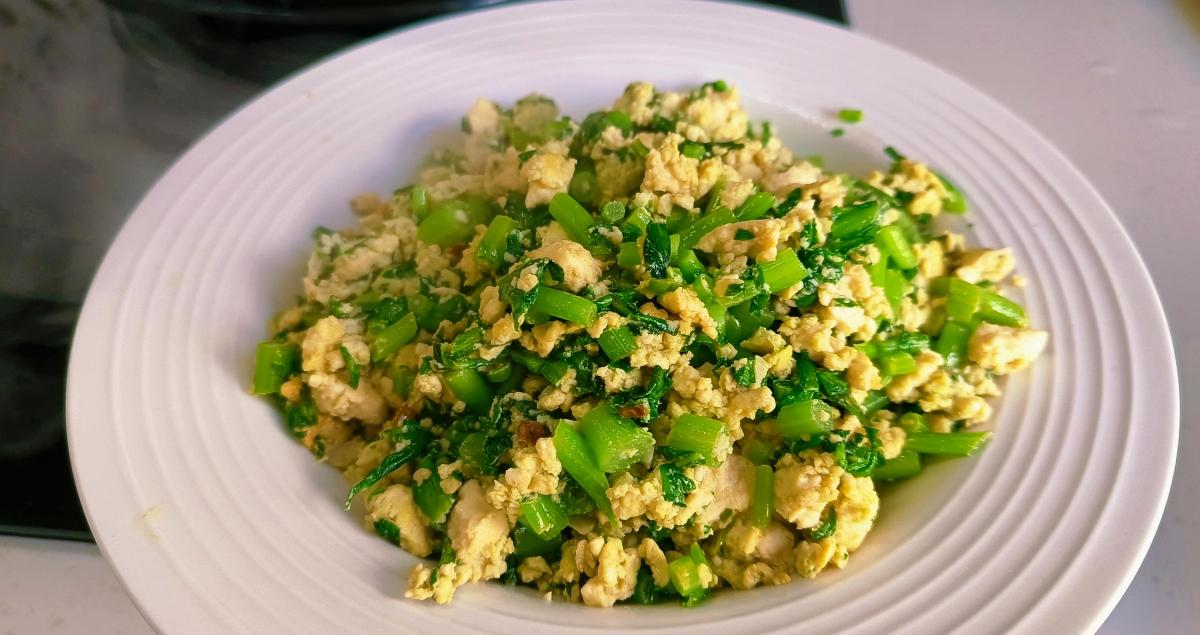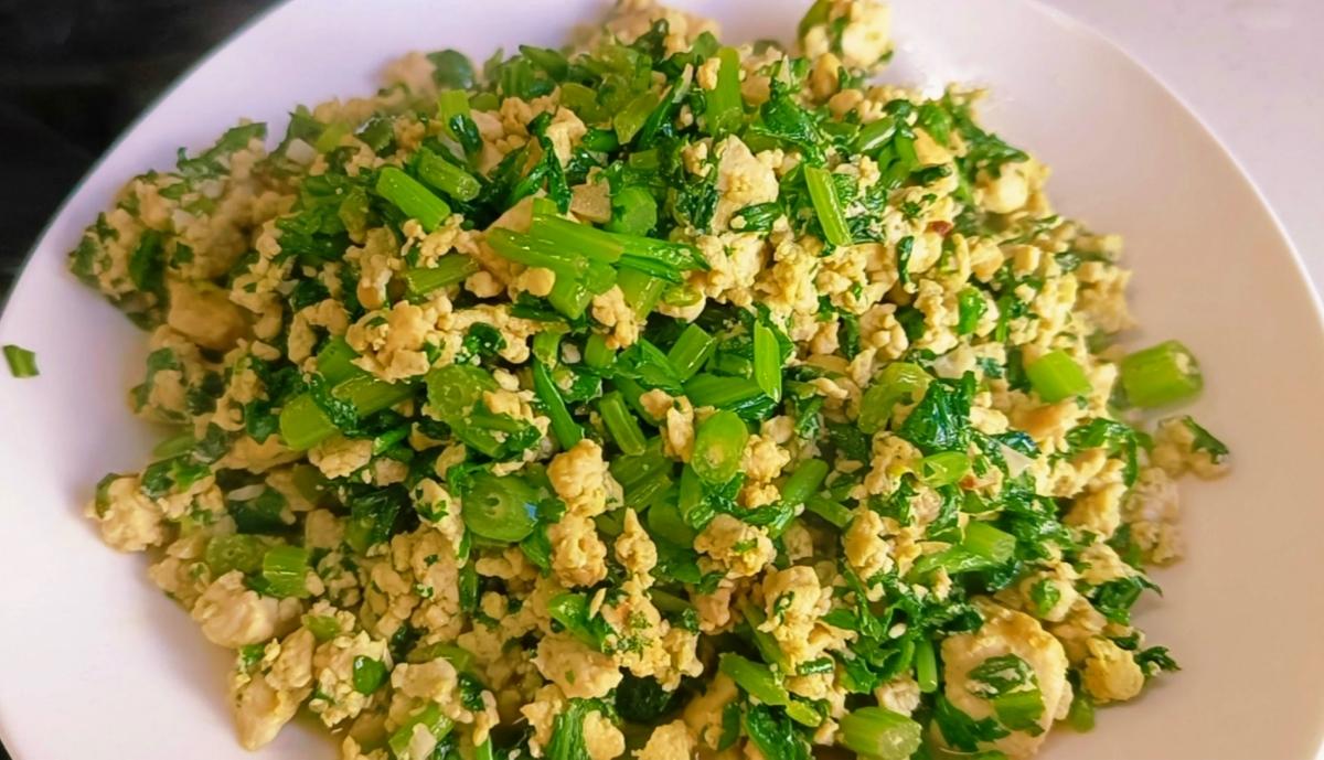 【炒茼蒿豆腐渣】: