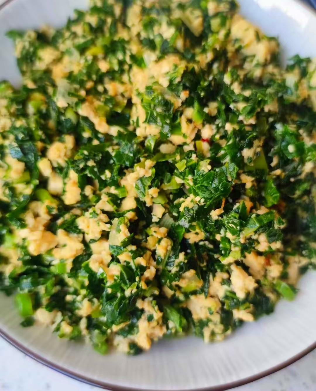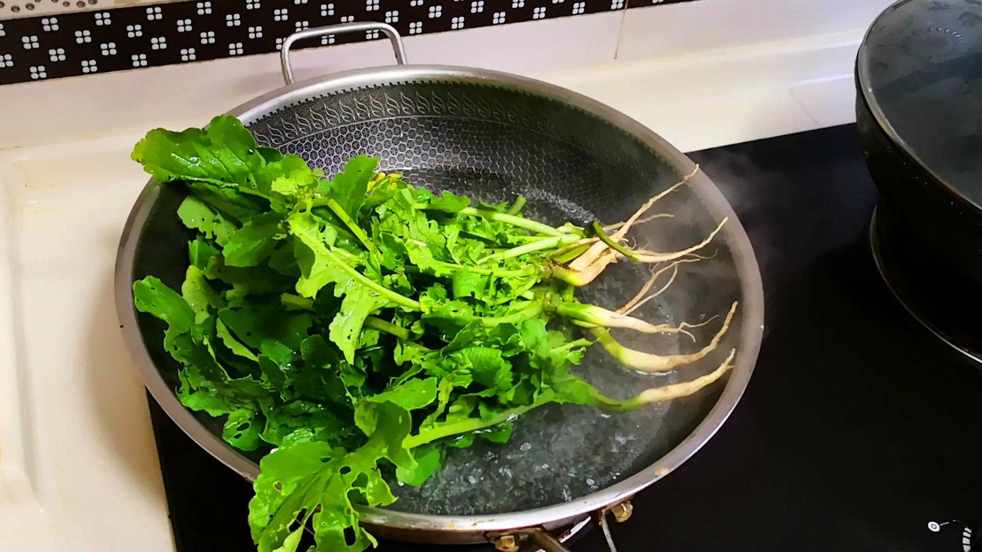 蘿蔔纓也就是蘿蔔的葉子,它富含膳食纖維、多種維生素、營養素和活皮素,具有清熱消腫、消炎止痛的作用,適量常喫,還有利於降血壓、降血脂。用它和豆腐一起做成渣,鮮香又可口!