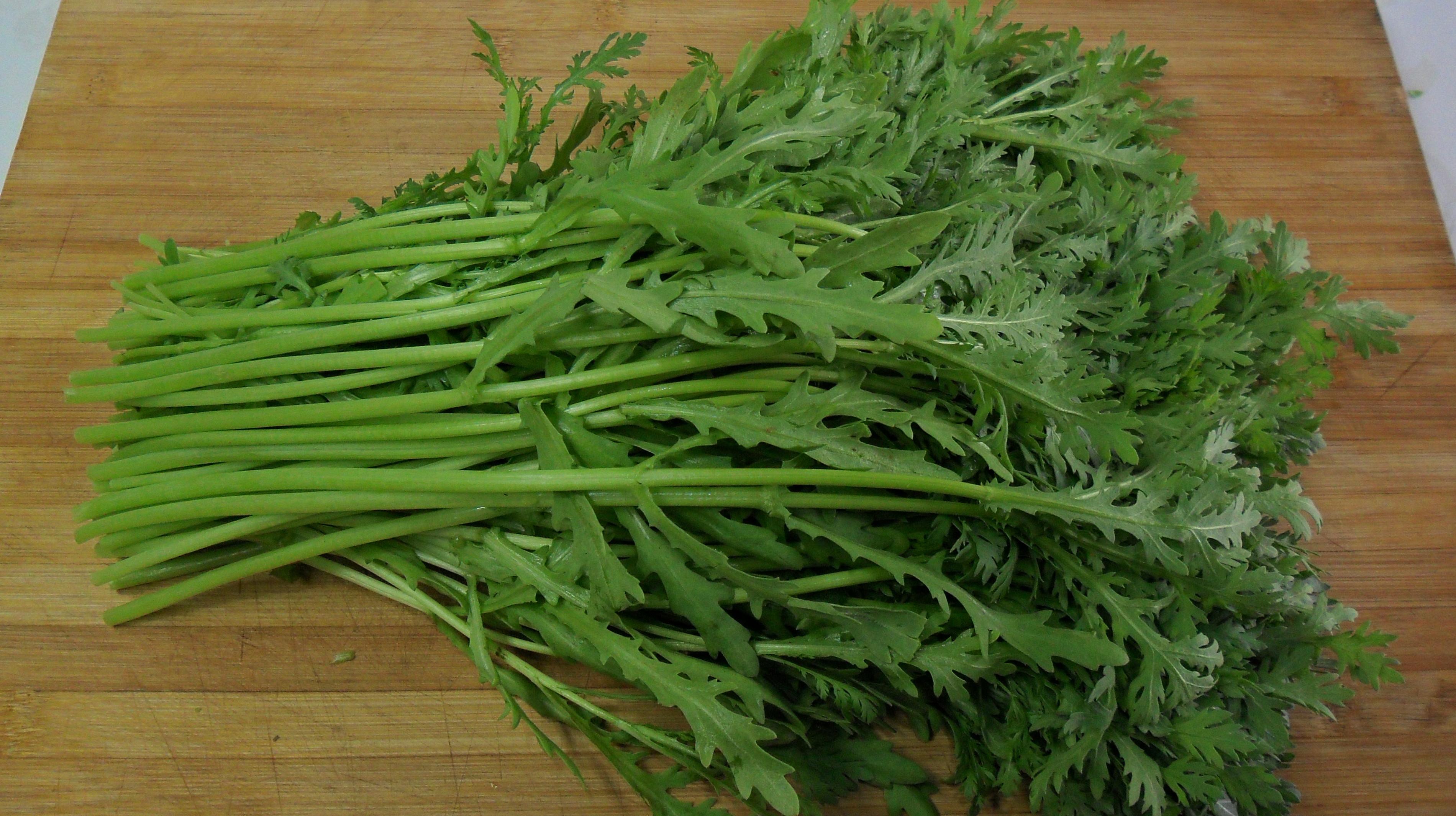 做法:1新鮮茼蒿清洗, 瀝乾水分,切段