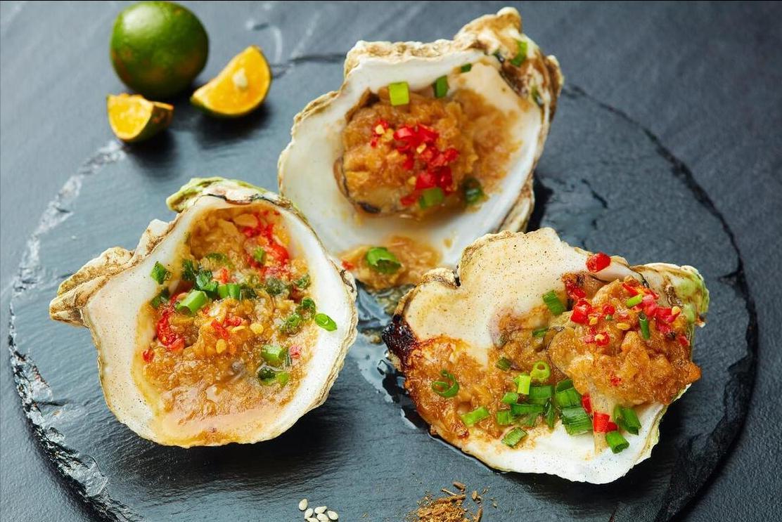 5、烤好之後的生蠔,拿出來以後立馬就能聞到香噴噴的味道了,最後把切好的蔥花撒上去做點綴,趁熱開喫,鮮香無比,營養又美味!