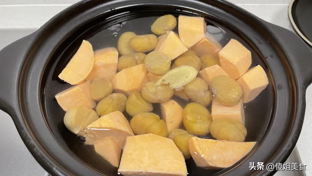 將紅薯和板栗搭配起來,不僅營養全面,而且兩者的甜香味相互融合,口感極其棒。再配合生薑驅寒、紅糖補氣和枸杞滋陰,一碗熱騰騰的紅薯板栗羹,能讓你的氣色越來越好。