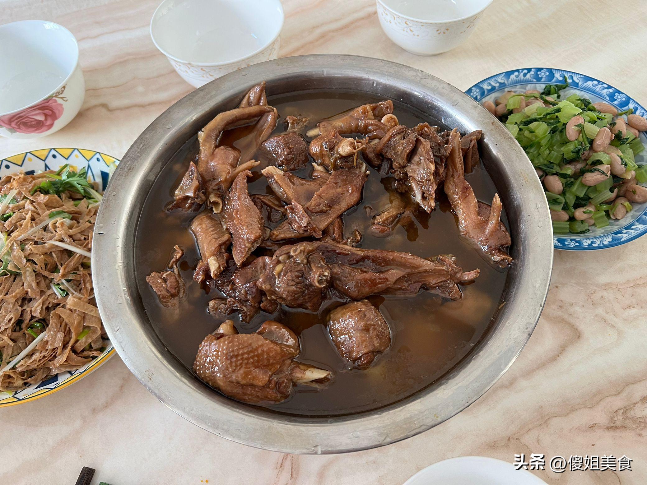 回到家,我就開始在廚房裏忙活起來。老伴在一旁給我打下手,我們倆有說有笑,心裏滿是對這頓午餐的期待。不一會兒,兩大盆香噴噴的紅燒雞塊就出鍋了。我還精心準備了兩個涼拌菜,芹菜拌花生和拌油豆腐皮,清爽可口,正好解解紅燒雞塊的油膩。當飯菜都端上桌,一家四口圍坐在一起,有說有笑地喫了起來。我看着兒子和他女友,心裏別提多滿足了。