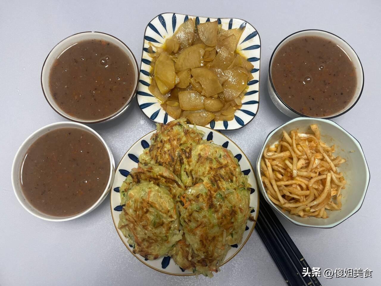 婆婆用五穀雜糧做的雜糧糊塗,晚上我們都喜歡喝粥,每天除了小米粥、大米粥、黏粥就是雜糧粥,一週都不帶重樣的做,婆婆一點都不嫌麻煩。提前把雜糧(紫米、黑豆、小米、紅豆等)泡一下,再放在破壁機裏打成糊塗就可以了,雜糧糊塗特香,我每次喜歡放點糖。