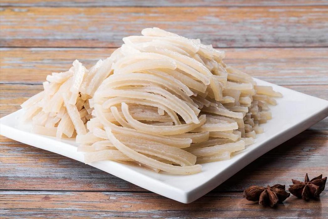 4、等到把這些髒東西刮乾淨以後,咱們再放到水裏多清洗兩遍,洗乾淨了之後就可以切成絲了。切好之後的豬皮,就可以倒在鍋子裏開始煮了,加上蔥姜、清水開始煮,保持大火燒開以後,改爲小火接着煮上1個小時左右。