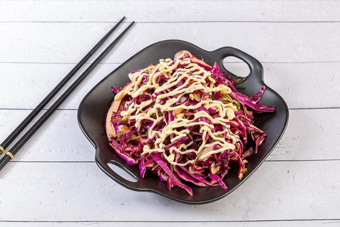 食材:紫甘藍、食鹽、白糖、白醋、雞精、香油、食用油