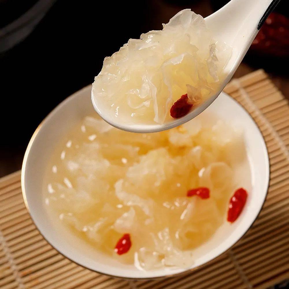 6起鍋前加入枸杞即可。銀耳膠質滿滿,一絲香甜,沁人心脾,滋潤又養顏,驅寒又保暖。