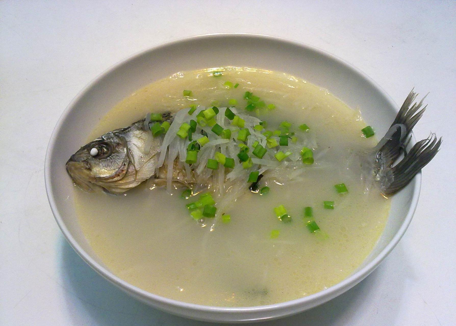 推薦喫法,蘿蔔絲鯽魚湯。鯽魚,肉質細嫩,富含蛋白質與多種微量元素,蘿蔔的清香與鯽魚的鮮美相互交融,既滋補又不燥。