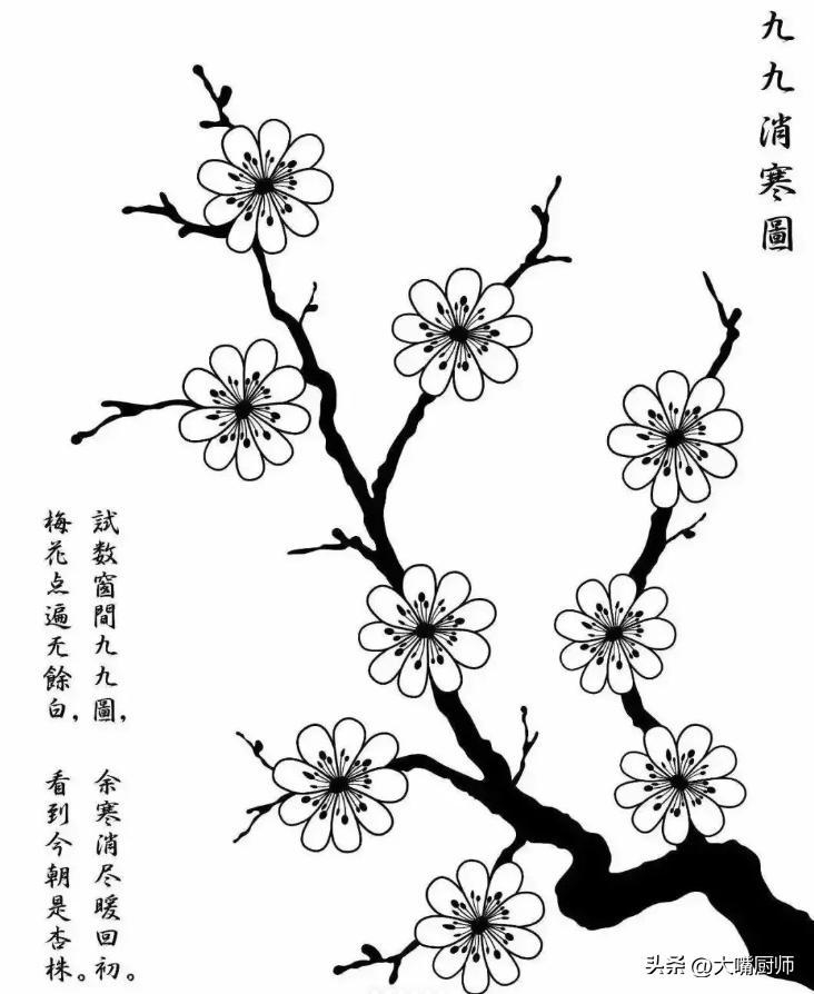 冬至後,“數九”便開始計算,而民間也有“九九圖”,本質是一種算法,總共有81個單位。以9天爲一週期,81個單位對應9個週期。從冬至那天一連爲“一九”,接着就是二九、三九,四九等。等到“九九”便是81。每過去一天,便在“九九圖”上劃掉一天。等數九天結束,這春天也快來了。