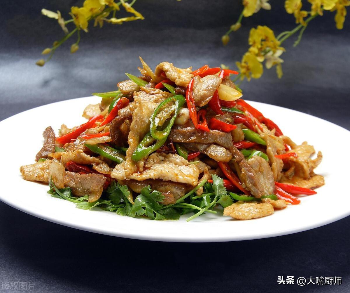 - 倒入洋蔥、青紅辣椒和一把蒜葉,加少許鹽和雞精白糖,大火翻炒均勻即可出鍋。