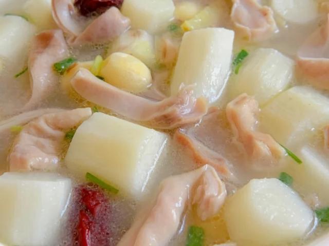 豬肚與雞肉一起燉煮,是一道充滿美味與滋補的家常湯品,滋補佳品。豬肚與雞肉的營養互補,湯色奶白,味道鮮美,營養豐富,人人愛喝。冬天喝一碗,整個身體都是暖暖的。