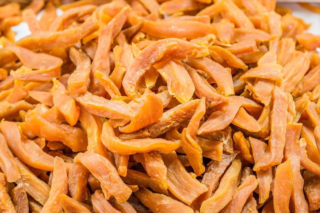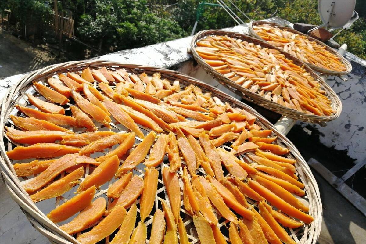 3、暴曬一整天的時間,太陽好的話很快就可以曬乾了,曬上1天以後的紅薯,再次放入鍋中來蒸,還是保持大火蒸10分鐘,隨後取出來放在室外去暴曬,繼續暴曬一天的時間,然後拿進來。