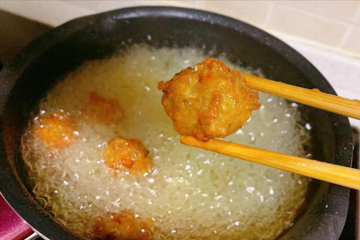 5、接下來就可以慢慢炸了,用小火炸的更透,還不容易炸糊,炸好之後的蘿蔔丸子,咱們將其撈出來,這樣趁熱就可以開喫了,如果想要更酥脆的話,那就復炸一次,喫起來更焦香,大人小孩都愛喫的蘿蔔丸子,冬天多來點。