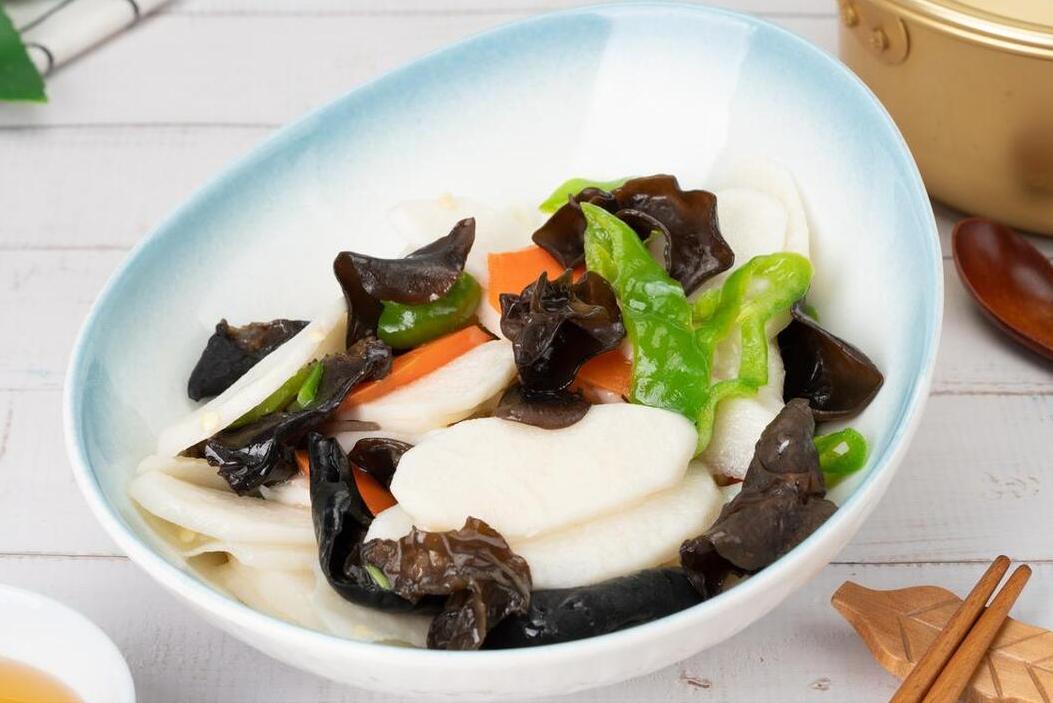 4、倒進去之後,用中小火慢慢炒,覺得太乾容易糊鍋的話,可以往裏面加上點清水,稍微燜煮一會兒,直到木耳和山藥熟透之後,這個時候來調味,往裏面放上適量的鹽、味精、生抽,再加上一點點老抽,快速翻炒均勻後,這道菜就完成啦,盛出來開喫。別管什麼做法,冬天多來點山藥喫,非常有好處!