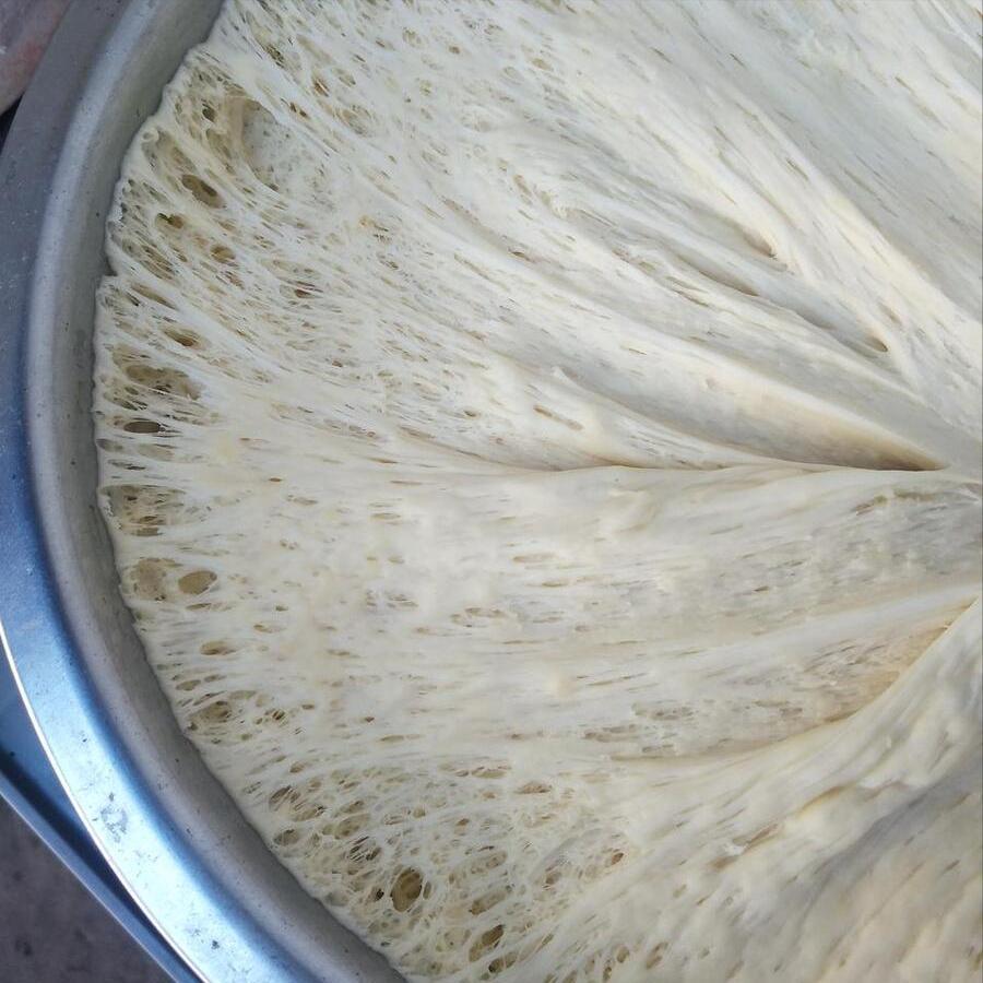 5、掀開蓋子看一下,是不是已經非常大、非常軟了?麪糰變成之前的兩倍大,並且撕開面團看一下,裏面是蜂窩狀的話,就說明這次醒發的不錯,可以拿出來進行烹飪了,做什麼麪食都特蓬鬆。