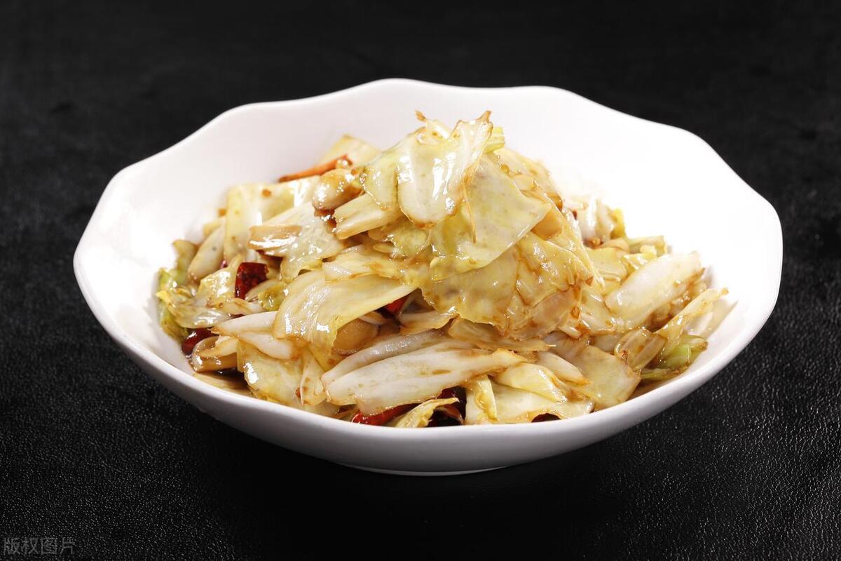 用到:包菜、大蒜、幹辣椒、鹽、白糖、雞精、醋、生抽、澱粉、食用油