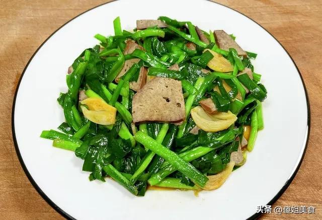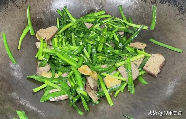 【韭菜炒豬肝】所需食材:韭菜、豬肝、蒜片、鹽