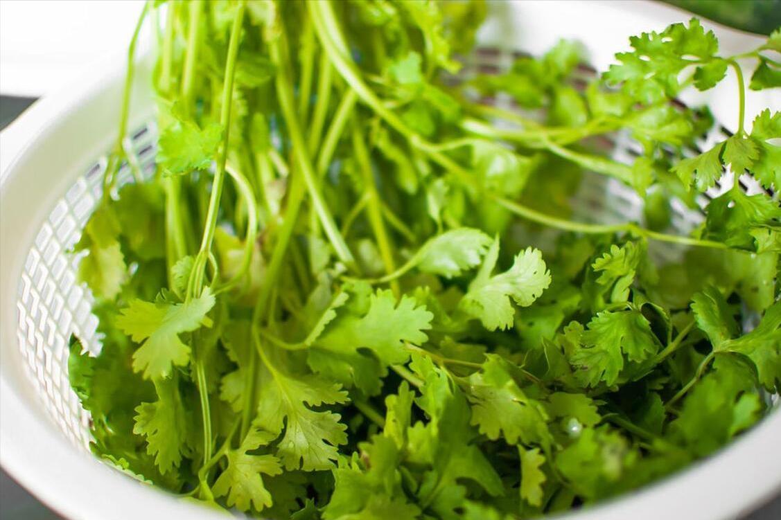 用到:新鮮香菜、保鮮盒、清水