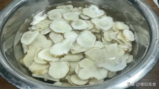 【具體做法】:1、洋姜洗淨,去皮後切成薄片,一定要仔細清洗哦,它生長在底下,泥土比較多。青椒去籽後切成條狀,蔥切段備用。爲了讓洋姜的口感更加脆嫩,可以將切好的洋薑片先用清水泡10分鐘。