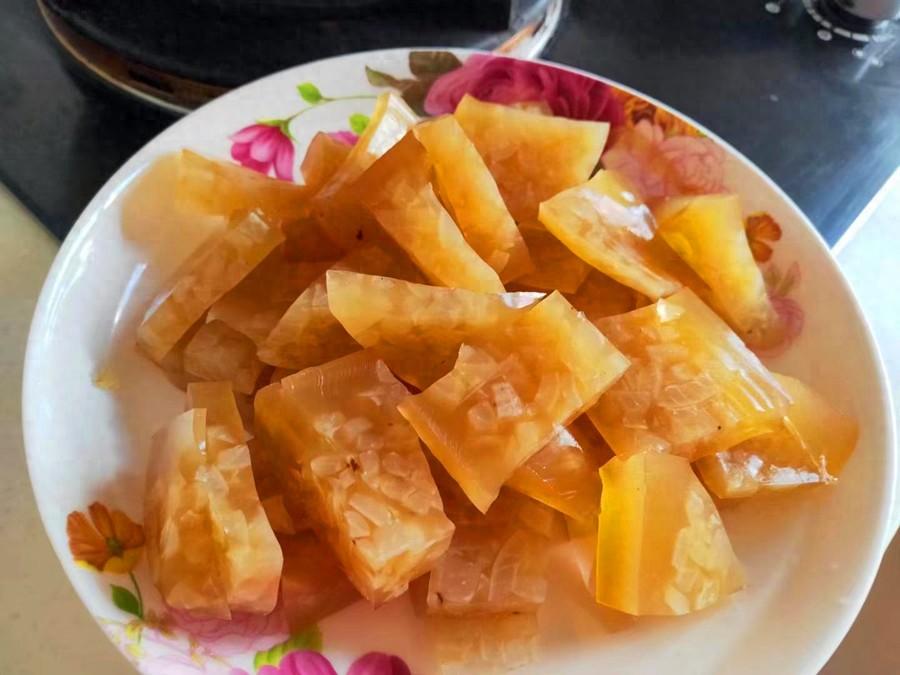 豬皮凍顧名思義也就是用豬皮做成的凍,是將豬皮經過熬煮以後,冷卻凝固而成。由此不難看出,看似簡單的豬皮凍,其實都是滿滿的膠原蛋白,同時還富含彈性蛋白、硒、鈉、磷、鉀、鎂、膽固醇、核黃素按、硫氨酸、煙酸和多種維生素,常喫有美容養顏和抗衰老的功效。
