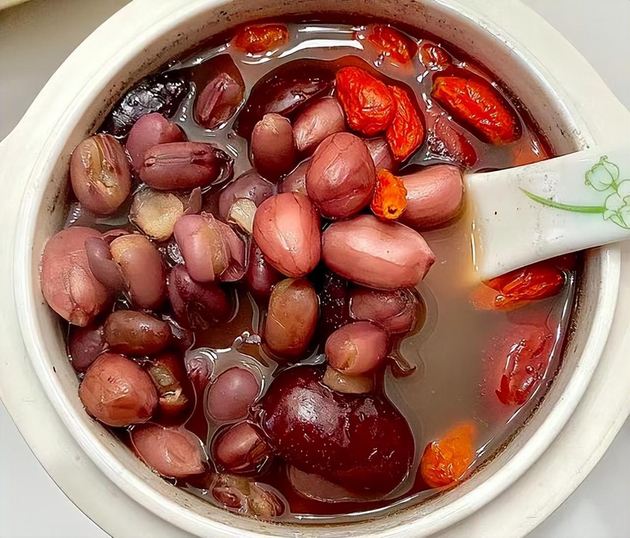 花生的外衣紅色,對人體的補氣血極好,搭配花生其他營養成分,可以滋養皮膚和增強免疫力。