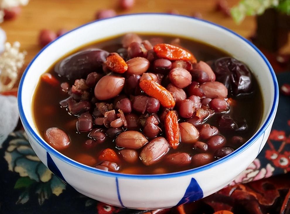 食材:紅豆,花生,紅棗,紅糖,枸杞