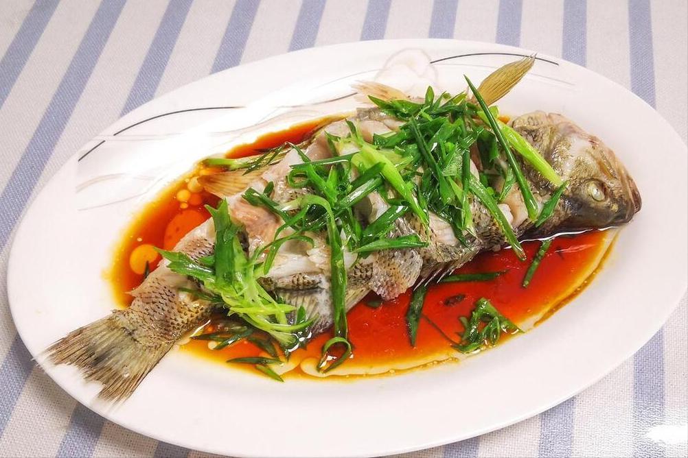 魚的內臟、魚鱗處理掉,沖洗乾淨以後,在魚肚子還有魚的身上鋪上蔥姜醃製片刻。接下來燒一鍋開水,把魚放進去,保持大火蒸10分鐘。接下來把魚取出來,把蔥姜挑出來,多餘的水分倒掉,接着重新鋪上新的蔥薑絲,然後澆上熱油,最後用蒸魚豉油調味,就可以啦。
