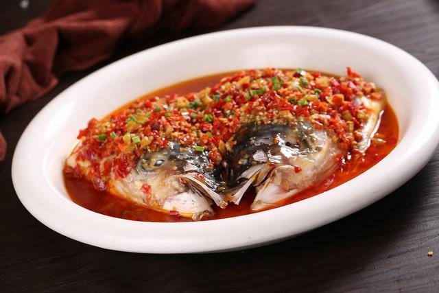 - 魚頭放入蒸盤,鋪上炒好的剁椒醬料,水開後上鍋蒸15 - 20分鐘,關火取出,淋上蒸魚豉油,撒上蔥花,淋熱油激發香味。