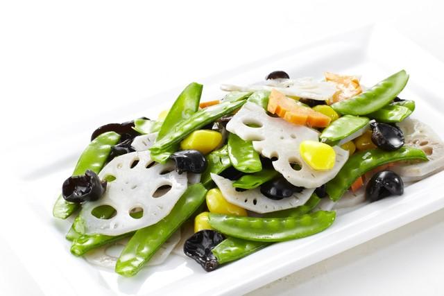 - 開水分別焯燙食材。熱油爆蒜末,倒入所有食材翻炒,加鹽、生抽調味,出鍋前淋香油。#元旦#