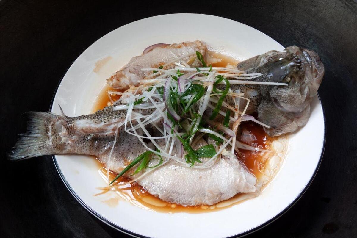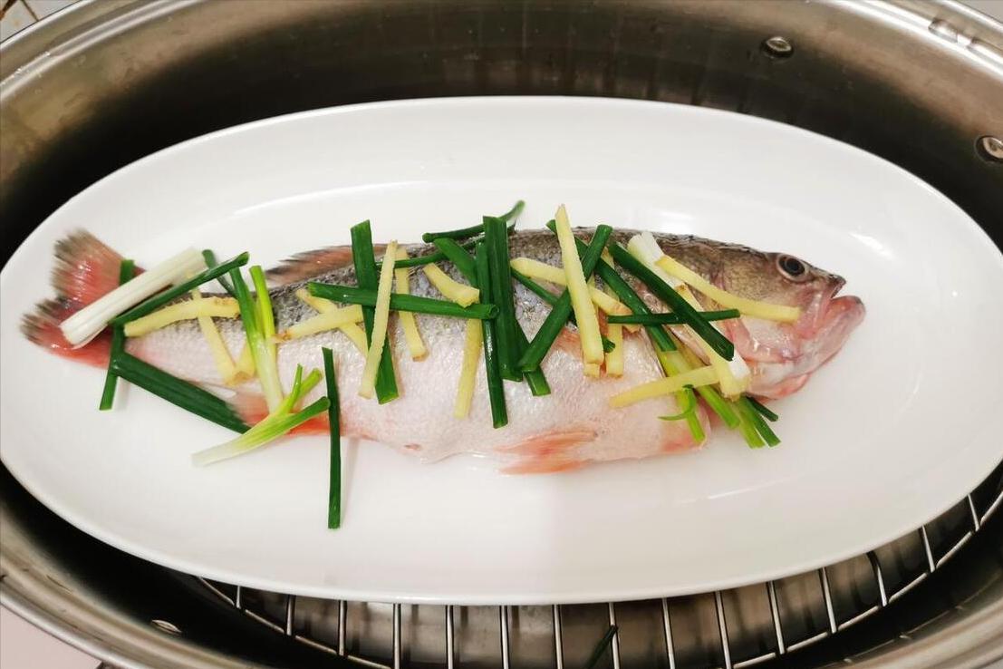 3、等到鍋子裏的水徹底燒開後,鱸魚也醃製好了,這時候直接把鱸魚放到鍋子裏去蒸,蒸上10分鐘。很多人弄不明白,魚肉到底要蒸多久,蒸太短時間會不會不熟?完全不會,時間太長反而容易柴,只要個頭不算特別大,都蒸10分鐘就行。