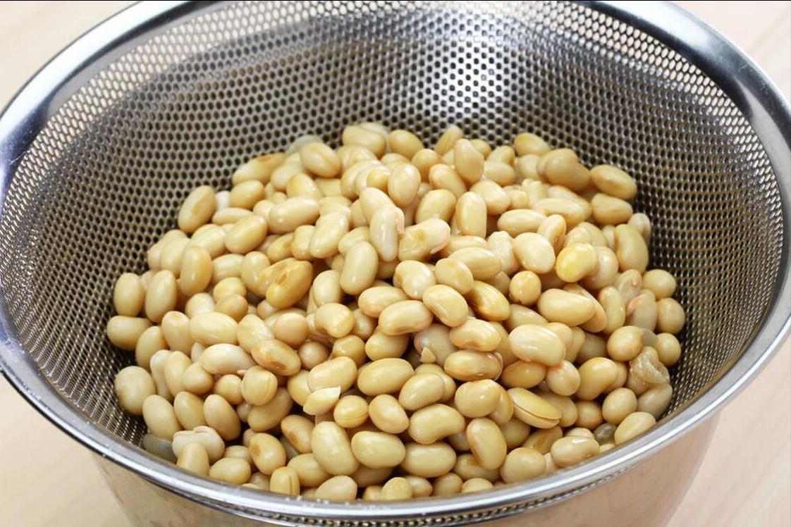 2、黃豆泡發,至少得泡上6——8個小時,才能把黃豆泡軟,天氣熱或者家裏有暖氣的話最好放冰箱。泡好之後的黃豆,很多人的做法都是直接倒在破壁機中來打豆漿,實際上是不對的,打出來不夠細膩,殘渣比較多。