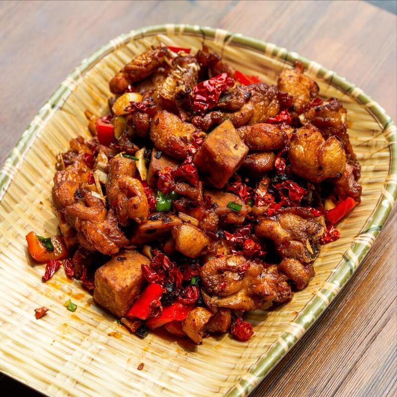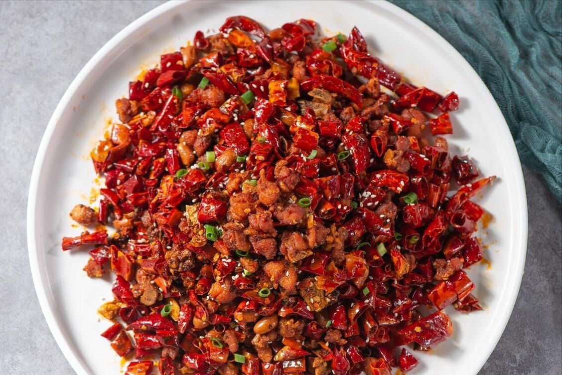 食材:雞肉、乾紅辣椒、花椒、白芝麻、鹽、味精、白糖、生抽、料酒、澱粉、食用油