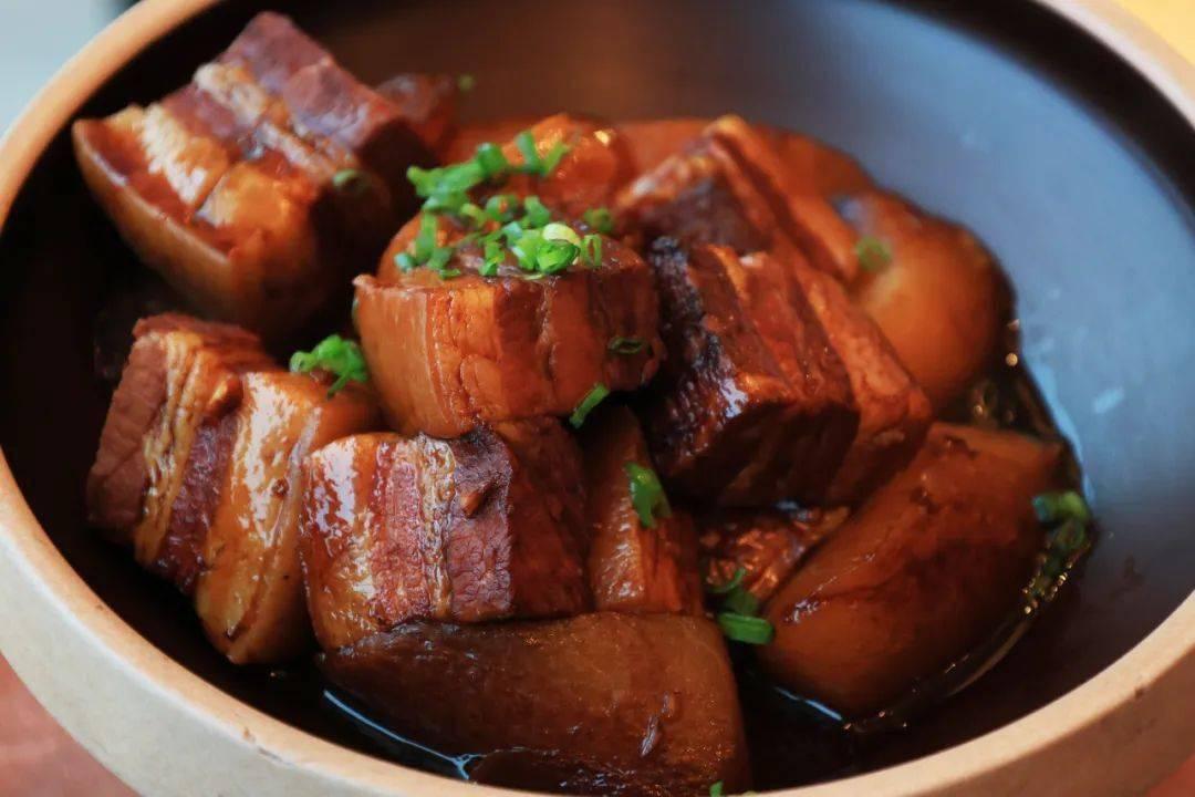 紅燒肉是新年必喫的美食,酒席上的硬菜。做好的美食,色澤紅亮,寓意着新的一年紅紅火火、鴻運當頭。