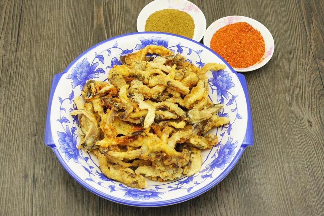 6、炸蘑菇要想喫起來更酥脆,必須要復炸一次,復炸後就算是涼了也不回軟,這是第3招。撈出來的平菇,將孜然粉、椒鹽倒上去調味,就可以盡情享用啦,自己在家炸的,剛出鍋比外面賣的還要香!