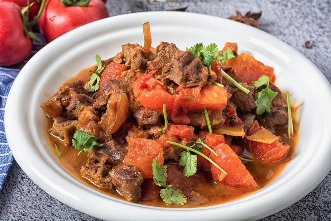 5、燉好之後,把西紅柿和土豆倒進去,把蓋子蓋上繼續燉半個小時左右,把土豆燉爛後就可以了,最後往鍋子里加上鹽和味精調味,然後再次轉爲大火,將鍋子裏多餘的湯汁收一收,就可以出鍋啦,慢慢享用,色香味俱全,配着大米飯喫太過癮、太美味了!