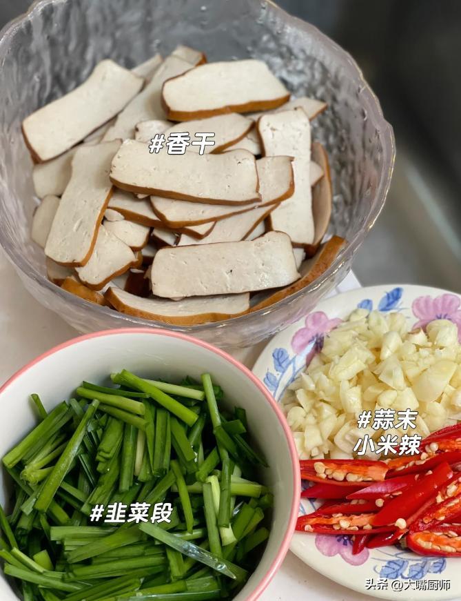 今天給大家推薦一個【韭菜炒香乾】的簡單做法:
