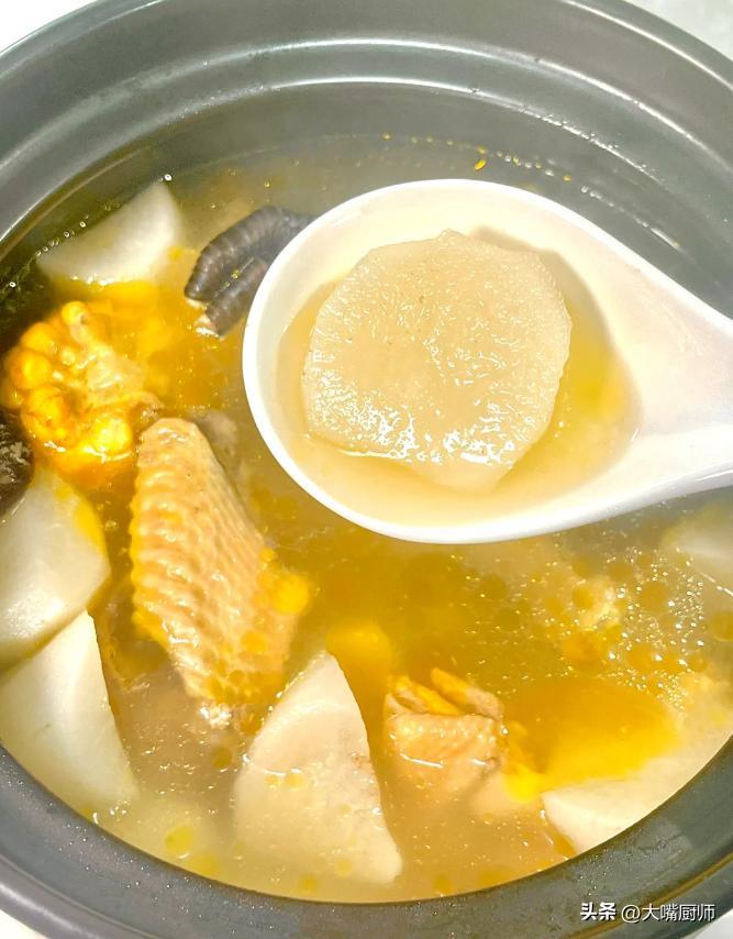 (4)、把玉米段和香菇放進去,攪拌均勻,蓋上鍋蓋,繼續燉煮15分鐘。等玉米熟了後,加入紅棗和蟲草花,撒點鹽攪勻,繼續燉個10分鐘,最後就能盛出一鍋香噴噴的湯了。