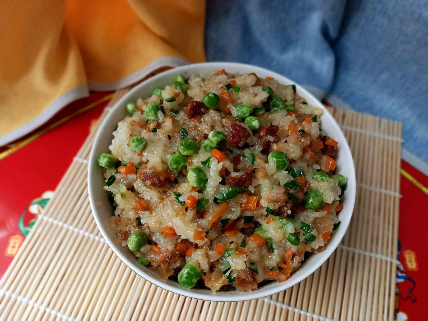 製作糯米飯一般用臘味搭配一些食材,喫起來特別香。食材顏色鮮豔,營養豐富,誘人的香氣,在寒冷的天氣裏,喫上一碗熱乎乎的糯米飯,不僅溫暖我們的胃,還能滋補身體。