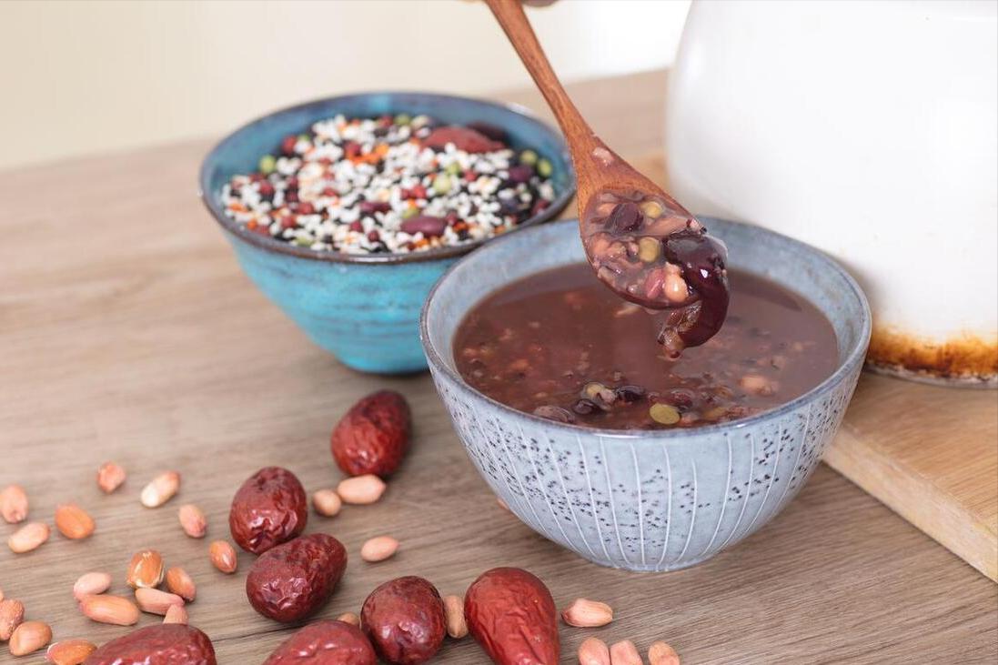 用到:大米、小米、黑豆、紅豆、綠豆、薏米、蓮子、花生、紅棗等