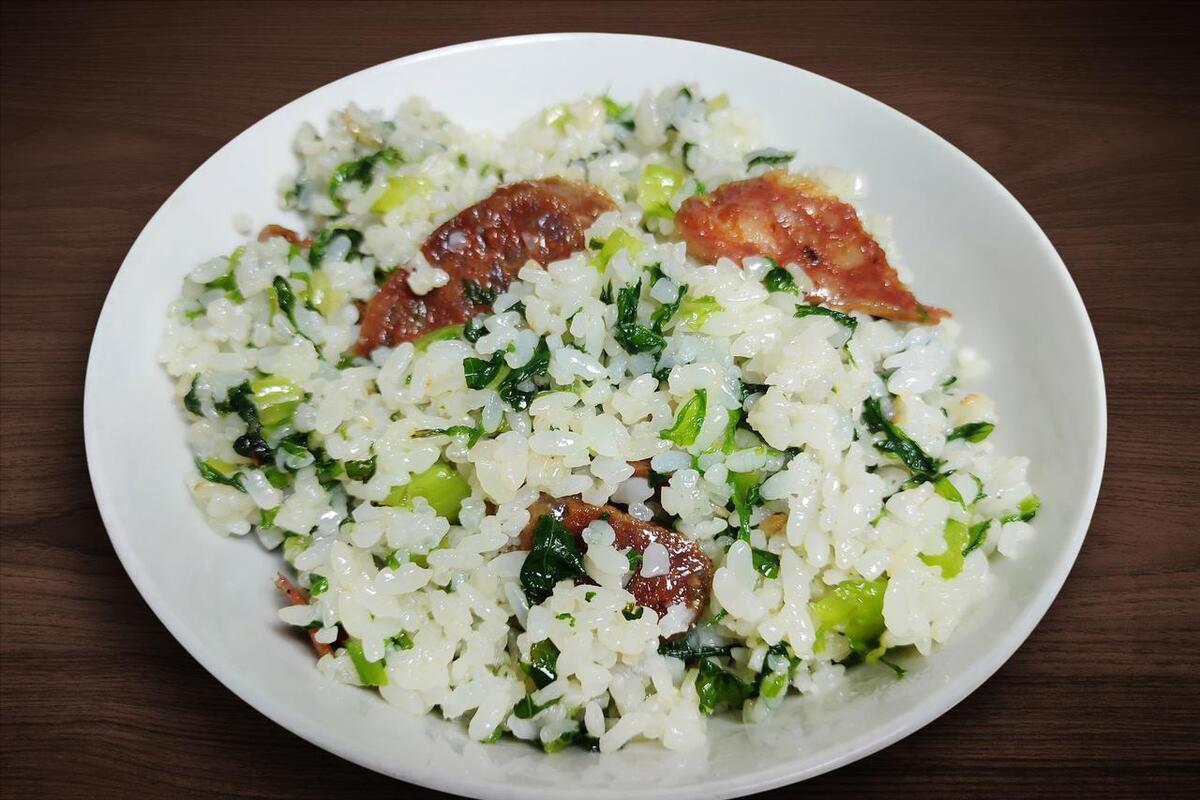 用到:大米、臘腸、油菜、鹹肉、料酒、豬油、鹽