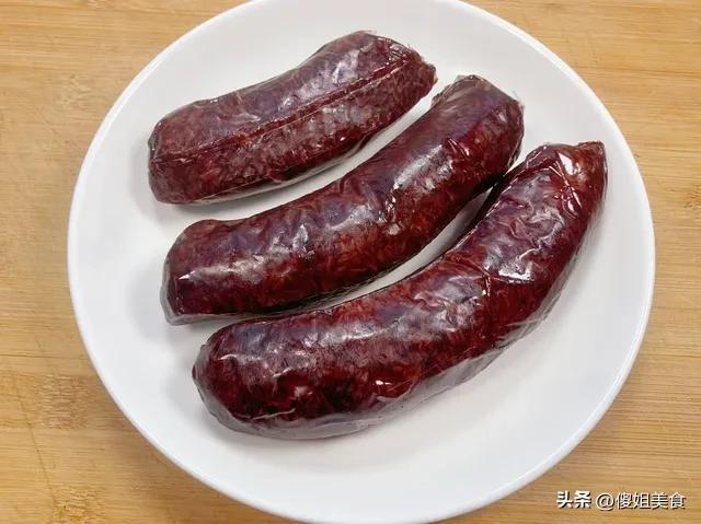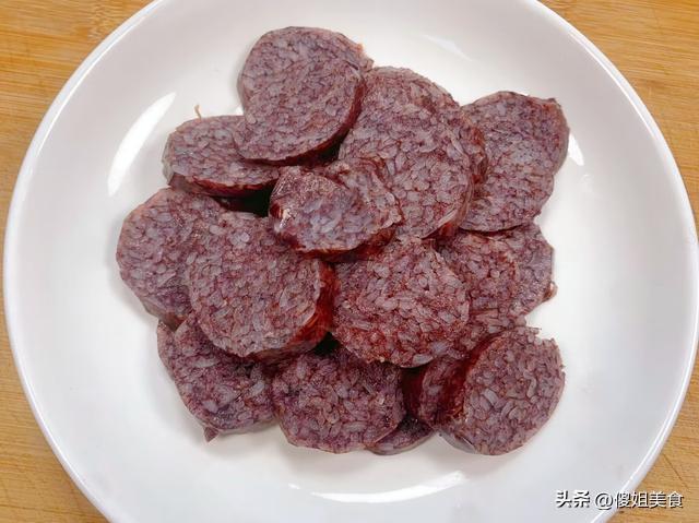 具體步驟:1、鴨血腸沖洗乾淨,切成均勻薄片,因爲有糯米,會比較粘,只需把菜刀用冷水衝一下,切得時候就不會粘菜刀了。