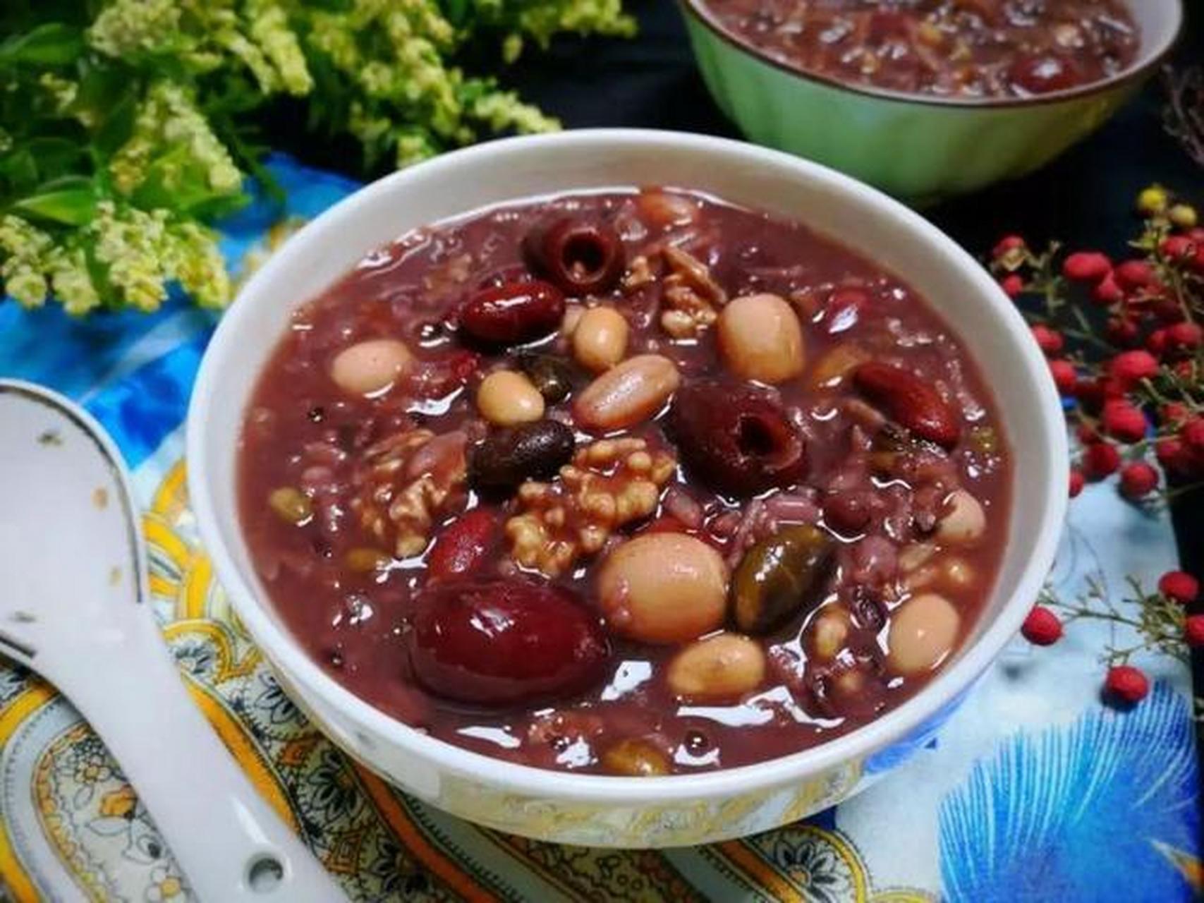 食材:糯米,大米,紅豆,黑米,蓮子,大棗,花生,綠豆,冰糖,枸杞